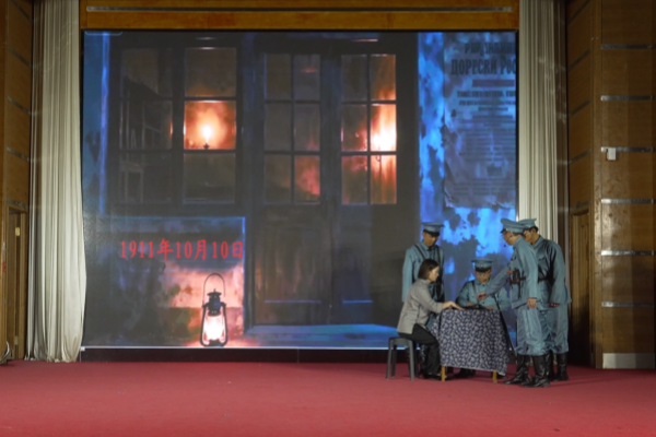 画面转换到1911年武昌起义前夕,秘密联络点内气氛紧张而肃穆,5名革命者围坐桌前。“同志们,清廷的压迫已到极点,百姓流离失所,国家危在旦夕!今晚,就是我们举起旗帜、反抗帝制的时刻!以青春之躯,赴家国之约!”年轻的革命者们怀揣救亡热忱,在搜捕危机中毅然举事。“推翻帝制,建立共和!驱除鞑虏,恢复中华!”的呐喊震彻全场,起义者攻占楚望台的身影与军民同心抗争的场景交织……表演者们眼神坚毅、步履铿锵,将百年前青年的热忱与激昂尽数流露;台下观众屏息凝神,跟随情节心潮澎湃,不少人眼眶含泪,深切感受到那段热血岁月里的青春担当。