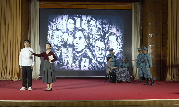 舞台上,学生昊燃站在学校校史角,向手拿《首义文化论纲》的王老师提问:“王老师,您总说‘首义精神’是我们学校的根与魂,可1911年的那场武昌起义,到底蕴藏着怎样的青春力量?”王老师目光望向远方:“这不是一段遥远的历史,而是与我们脚下这片土地紧紧相连的担当。110多年前,武昌城的一声枪响,打破了千年帝制的沉寂,那群和你们一样正值青春的人,用勇气和信念,点燃了民族觉醒的星火。而我们武昌首义学院,正是传承这份星火的沃土。” 昊燃追问道:“他们是谁?明明知道前路凶险,为什么还要挺身而出?”王老师微笑道:“他们是学生、是工人、是普通士兵,更是心怀家国的中国人。看,他们用青春诠释着‘首义’二字。”