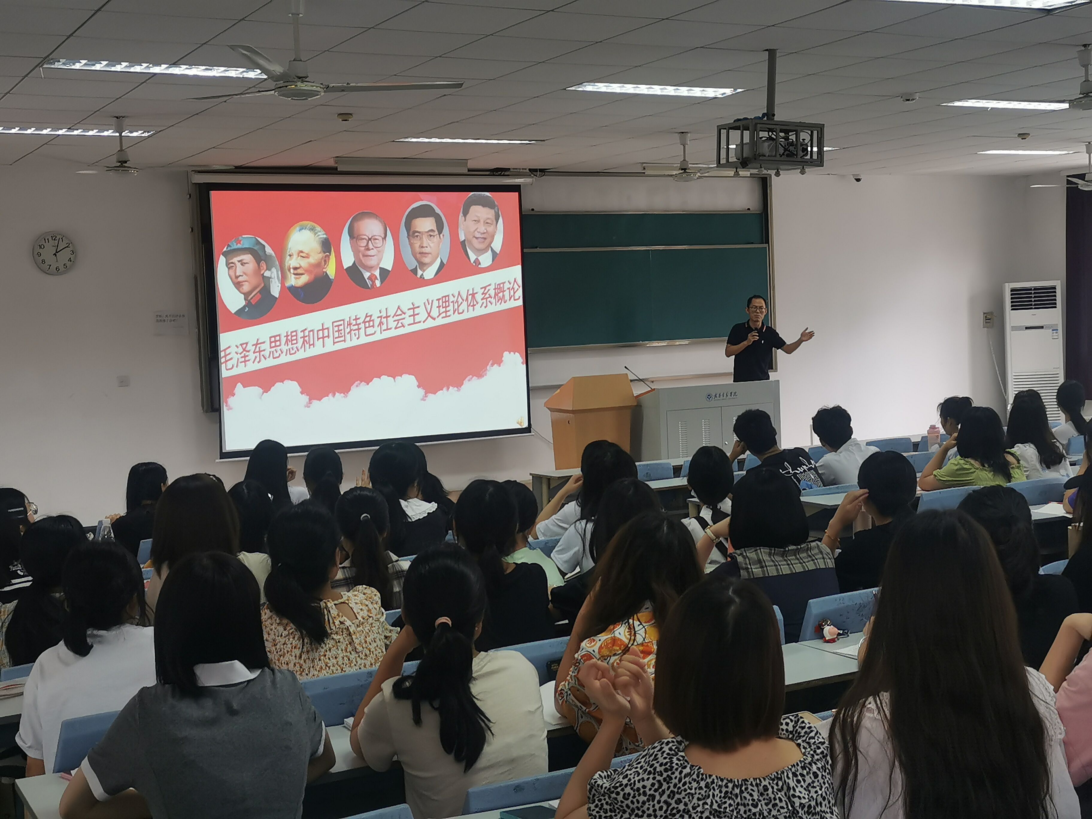 学院领导在18号教学楼聆听了赵立、陶洁、叶甜甜、邵艳琴老师主讲的《毛泽东思想和中国特色社会主义理论体系概论》课程。课上,老师们从“什么是马克思主义中国化”“为什么要把马克思主义中国化”“马克思主义中国化命题的提出过程”三个问题展开讲述,还向学生讲解了课程目标建设,并向学生提出了本课程学习和考核的相关要求。