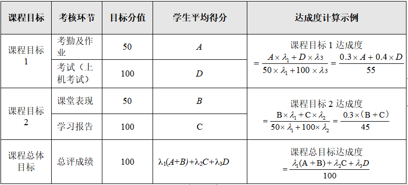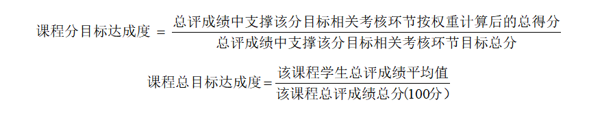 课程目标达成度评价包括课程分目标达成度评价和课程总目标达成度评价,具体计算方法如下: