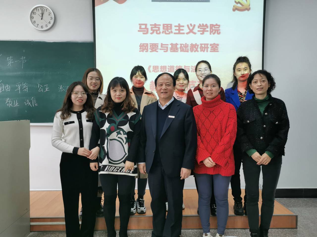 (通讯员 王玉珍)为迎接教育部本科教学工作合格评估,提升课堂教学质量,2021年11月6日,马克思主义学院纲要与基础教研室在成学楼217教室开展了评估周磨课研讨活动。会议由纲要与基础教研室副主任朱曼主持,除《思想道德与法治》全体任课教师参与外,还特邀了马克思主义学院院长李资源给予现场指导。