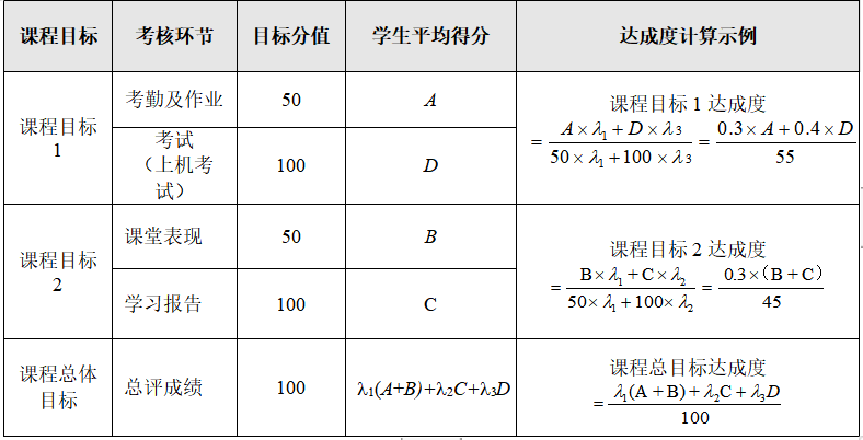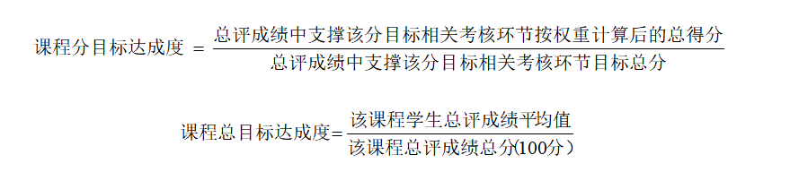 课程目标达成度评价包括课程分目标达成度评价和课程总目标达成度评价,具体计算方法如下: