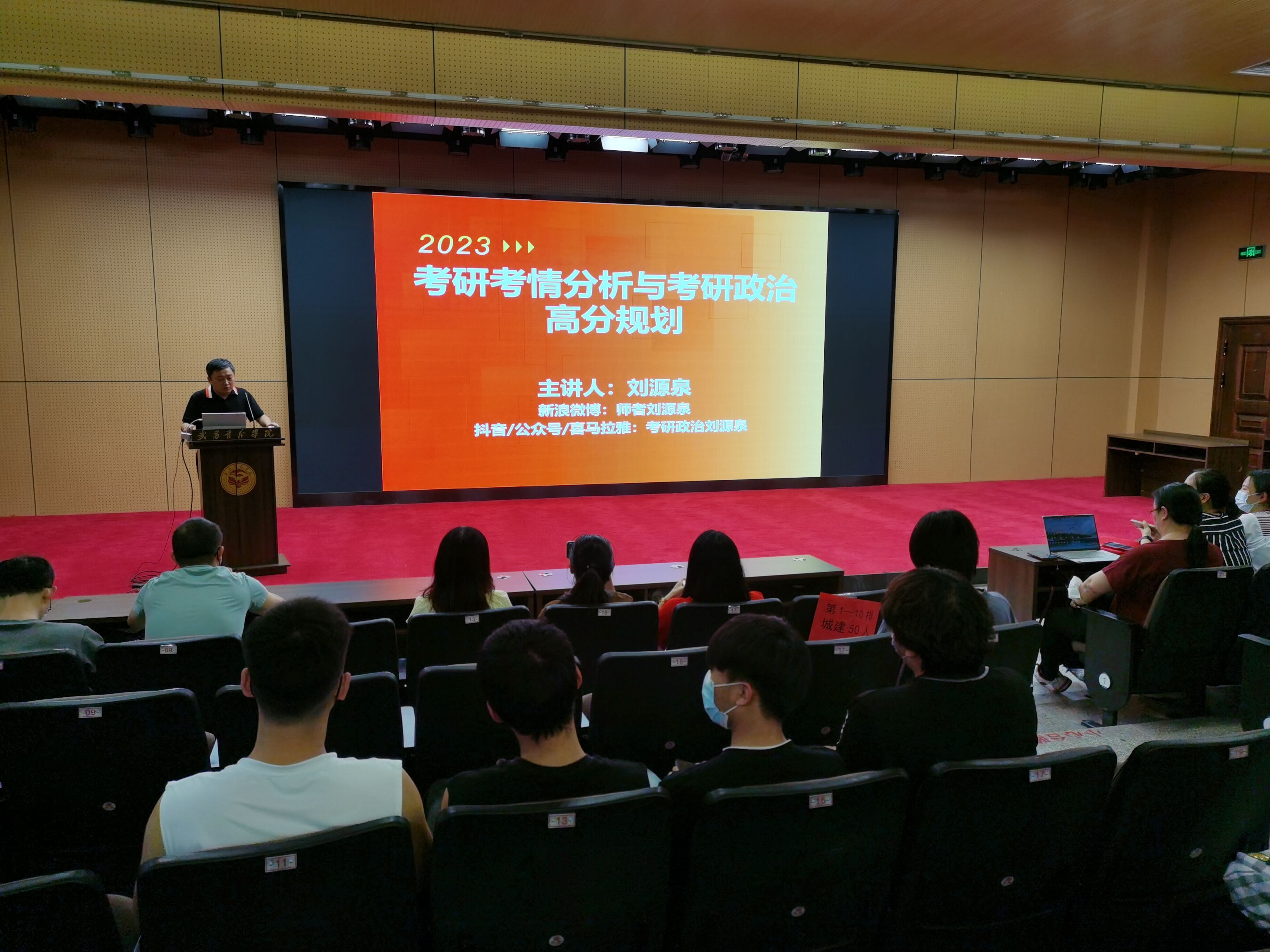 (通讯员 杜丽)为进一步提高同学们对研究生入学考试的认识,提高考研热情,明确考研目标,掌握相关考研技巧,5月23日晚,马克思主义学院联合校教务处在教学楼11-106举行了2023年考研政治辅导专题讲座。本次讲座邀请了考研政治辅导专家,新东方在线首批“千万名师”刘源泉老师给同学们做专业辅导,各学院有考研意向的同学参加了此次讲座。