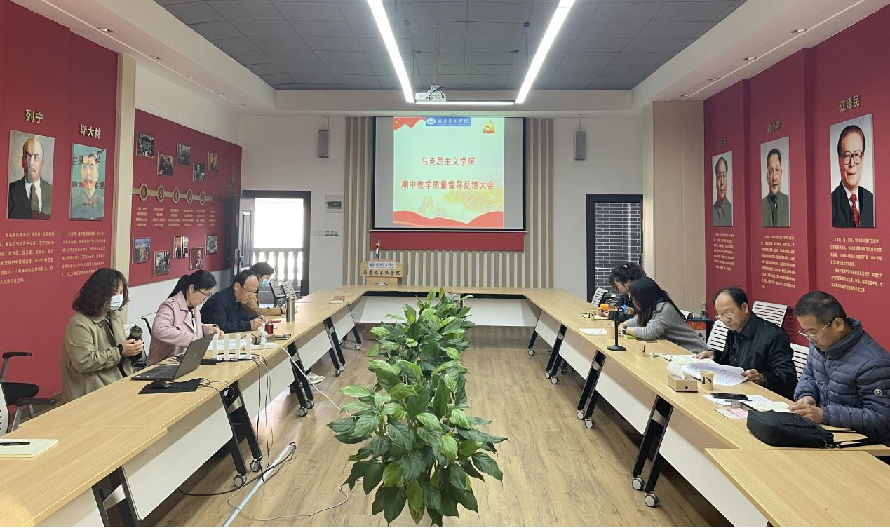 为了解本学期以来学院教学质量及督导工作情况,加强教学质量监控,进一步提升学院教学质量,2023年11月23日上午,马克思主义学院在院会议室召开了2023-2024学年第一学期期中教学质量督导反馈会,校级专职教学督导高宏扬教授、校级专职教学督导肖丰年教授,监评中心主任刘媛媛、院长李资源、教学副院长张瑾、学院教学督导与各教研室主任、副主任参会,会议由李资源院长主持。
