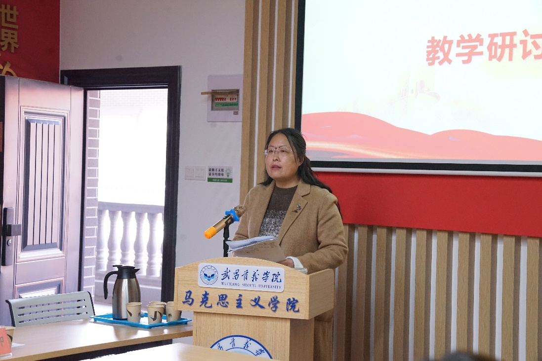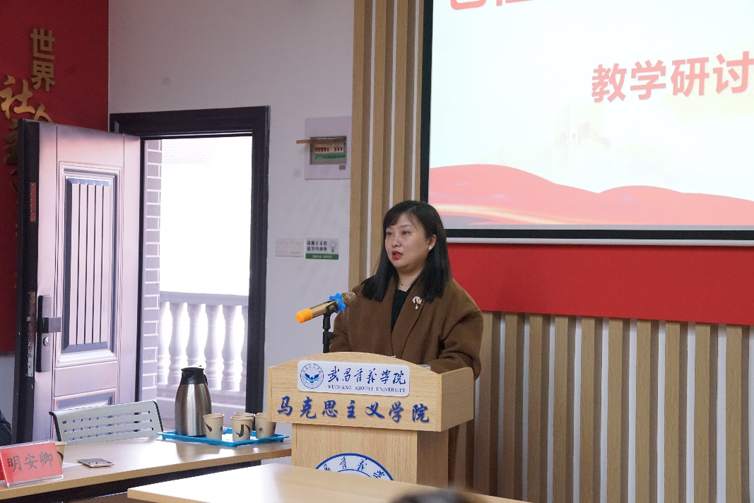 课程负责人苏婕老师针对教材第二章《如何讲清中国式现代化》的逻辑与原则为主题进行教学分享。苏婕老师提出,应积极关注形势热点来引导学生,让教学更加“接地气”。