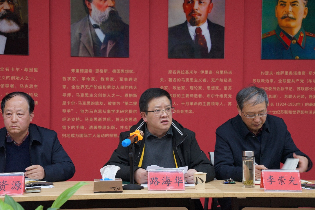 会上,校党委书记路海华以中共中央宣传部办公厅“关于做好习近平新时代中国特色社会主义思想概论教材使用工作”及“上好开学第一课”的文件为精神指导,提出应进一步推动习近平新时代中国特色社会主义思想进教材、进课堂、进头脑,加强教材研究,改进教学方法,推动教材体系与教学体系的转化,把教材优势转化为教学优势,更好的落实立德树人根本任务。