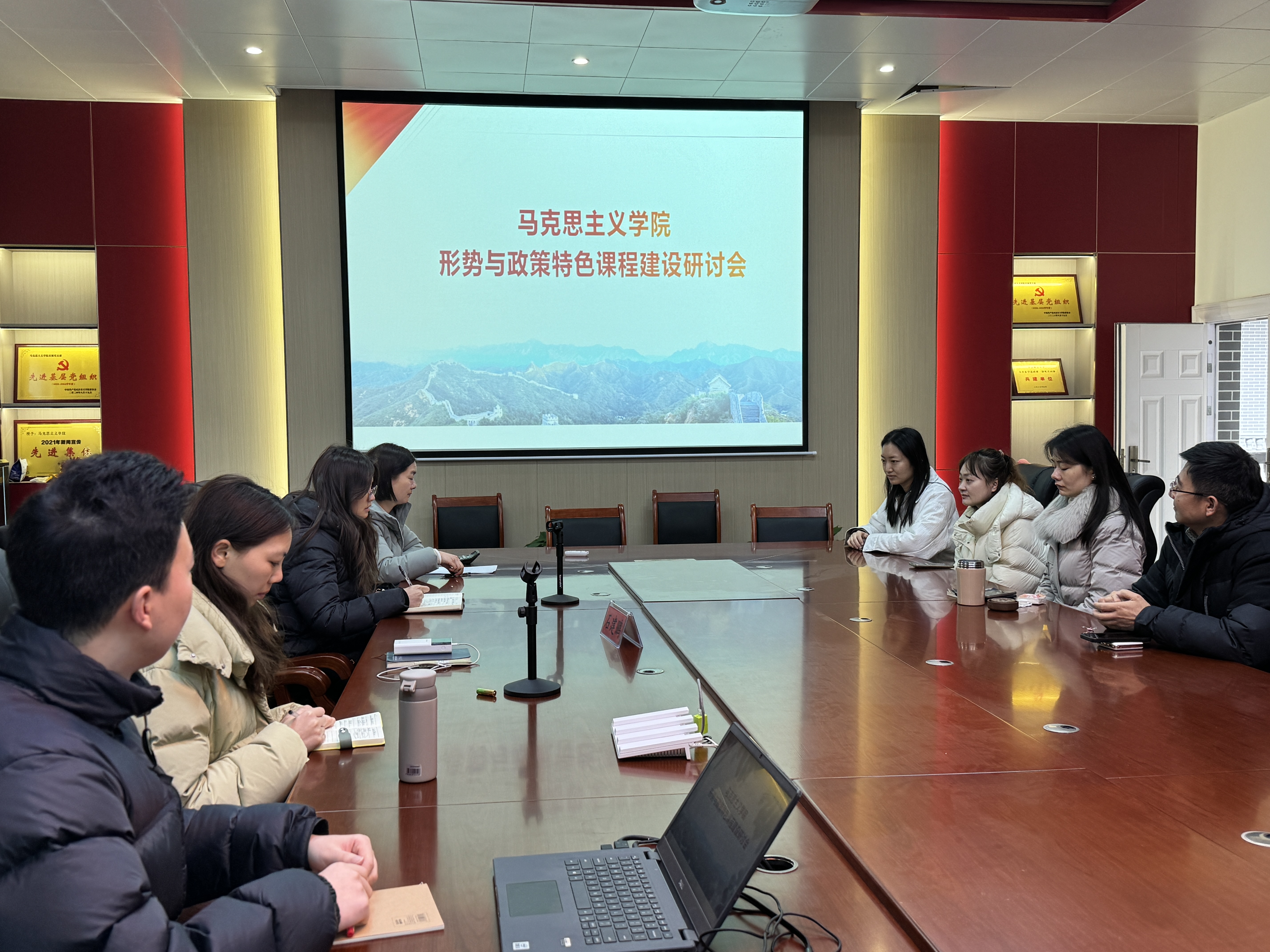 为持续推动形势与政策特色课程的教学质量提升,进一步巩固立德树人的教育成果,3月5日中午,形势政策与社会实践教研室在马克思主义学院会议室成功召开了形势与政策特色课程建设第二次研讨会。此次会议旨在深化前次会议成果,进一步探索课程建设的创新路径。
