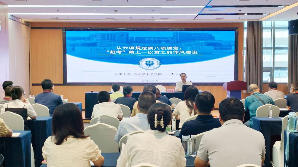 李云峰教授报告的题目为《从六项规定到八项规定:“赶考”路上一以贯之的作风建设》。他从《党政机关厉行节约反对浪费条例》中的基本原则入手,通过追溯历史,深入浅出的解读为什么我们党一直以来非常重视党的作风建设,重点围绕中国共产党作风建设的发展历程、重大成就、宝贵经验、扎实开展深入贯彻中央八项规定精神学习教育等四个方面对党的作风建设进行深刻阐释。他强调,面对新时代新征程新形势新任务,抓作风建设、抓中央八项规定精神贯彻落实只有进行时,没有完成时。我们要充分认识在全党开展深入贯彻中央八项规定精神学习教育的重要意义,深入学习贯彻习近平总书记关于党的作风建设的重要论述和中央八项规定及其实施细则精神,切实把思想和行动统一到党中央决策部署上来,扎实开展好这次学习教育,以作风建设新成效为进一步全面深化改革,推进中国式现代化提供有力保障。