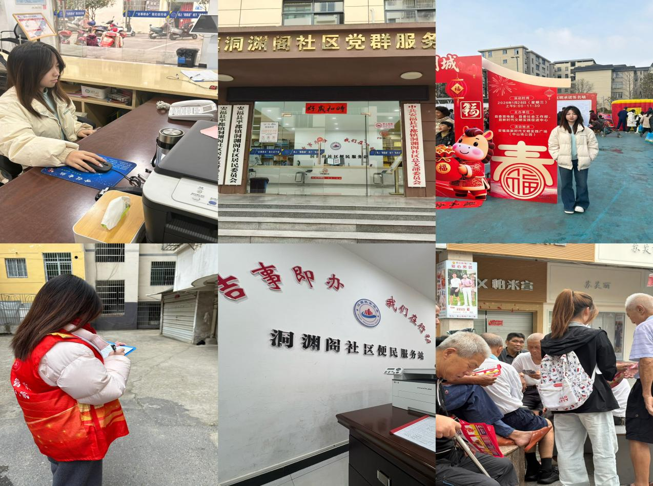 2026年1月12日-1月28日期间,为响应学校2026“三下乡”社会实践号召、提升学生社会责任感和综合能力,同时支持基层社区充实工作力量、创新治理模式,武昌首义学院新闻与文法学院法学2404班学生曾婧雯在马克思主义学院教师胡蓉老师指导下,在家乡江西省吉安市安福县,加入平都镇洞渊阁社区党群服务中心,开展了为期16天的寒假“三下乡”社会实践活动。学生围绕户籍人口普查数据整理、电动车排查整治、文明集市志愿服务等重点工作,以青春之力服务家乡,用实际行动诠释新时代青年的责任与担当。