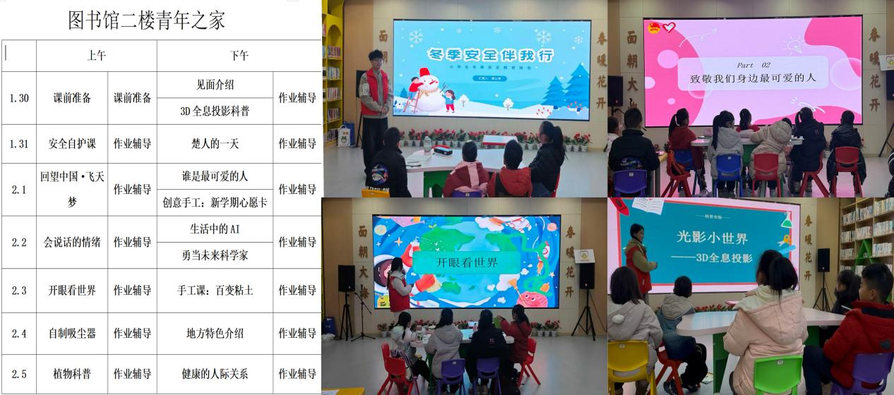2026年1月30日-2月5日,武昌首义学院新闻与文法学院汉语言2403班学生邓雨涵积极响应共青团中央“暖冬行动,关爱帮扶”号召,在马克思主义学院张瑾老师的指导下,返回家乡湖北省黄冈市团风县,积极加入当地“爱心托管班”志愿服务项目。她以“安全守护、素养提升、陪伴关爱”为核心,用实际行动为留守儿童、双职工子女搭建起温暖的“寒假乐园”,用青春力量书写青年担当。