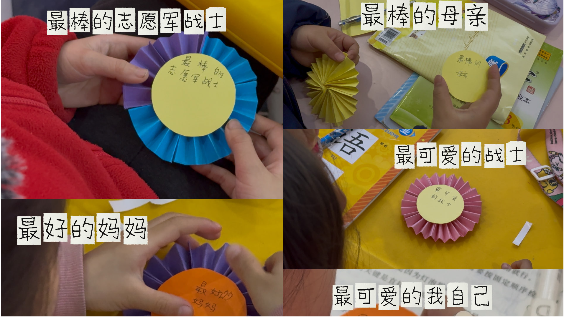 在“谁是最可爱的人”主题课上,她通过抗美援朝红色故事分享、历史影像展播,从三大精神带领孩子们回顾革命先辈与当代平凡英雄的事迹,引导孩子们制作“感恩勋章”手工,让感恩与担当的种子在心中扎根。