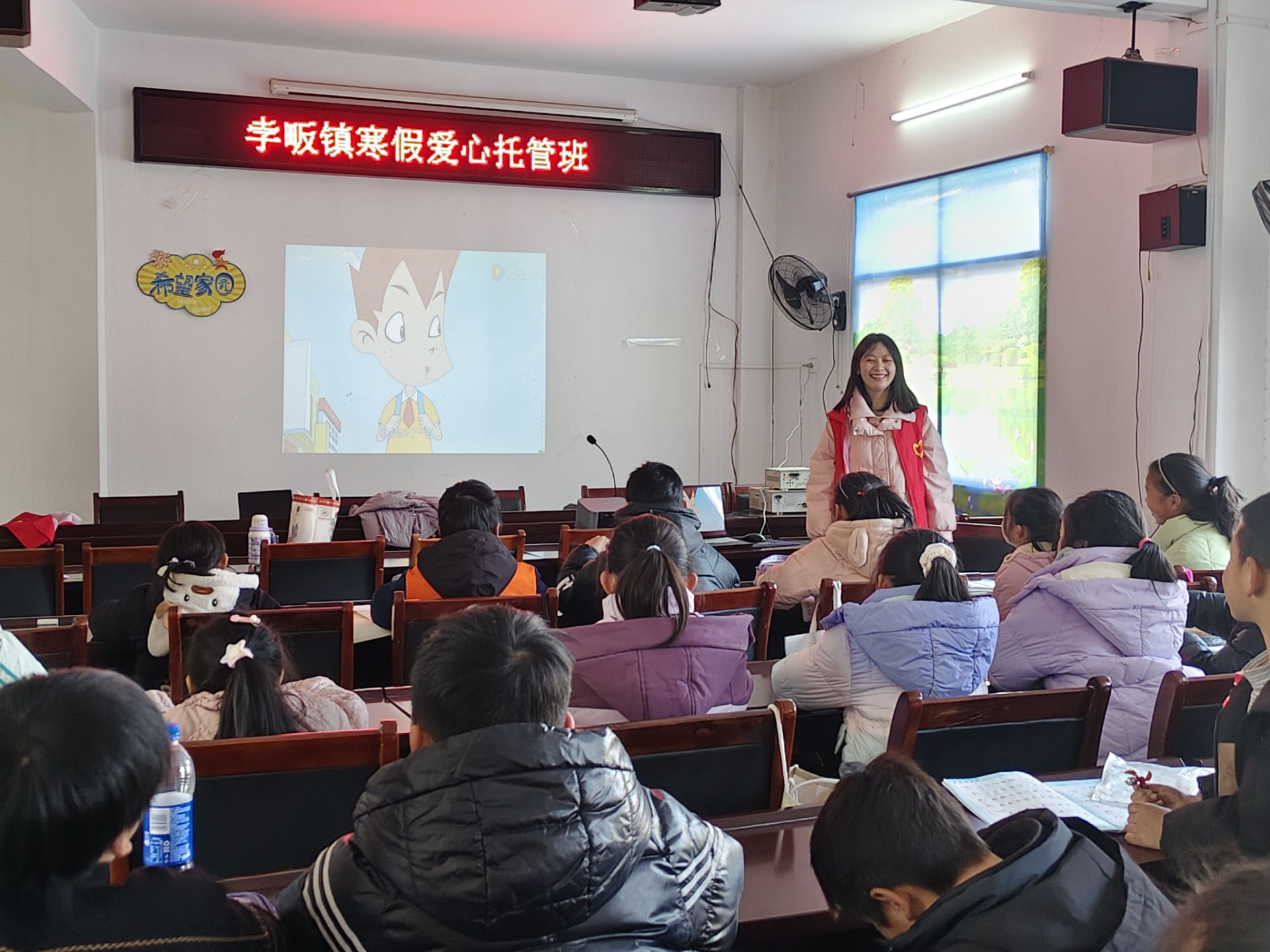 为响应第九次全国少代会号召,健全志愿服务体系,关爱留守儿童、助力乡村教育振兴,是青年一代的重要使命。2026年2月2日到2月6日,汉语言2405级学生吴玉娇在张瑾老师指导下,践行“三下乡”社会实践要求,深入安陆市孛畈镇新时代文明实践站爱心托管班,为40余名留守儿童开展为期5天的特色志愿服务。活动以红色教育铸魂、安全自护赋能、课业辅导提质、趣味游戏暖心陪伴,用青春力量守护孩子们的寒假时光。