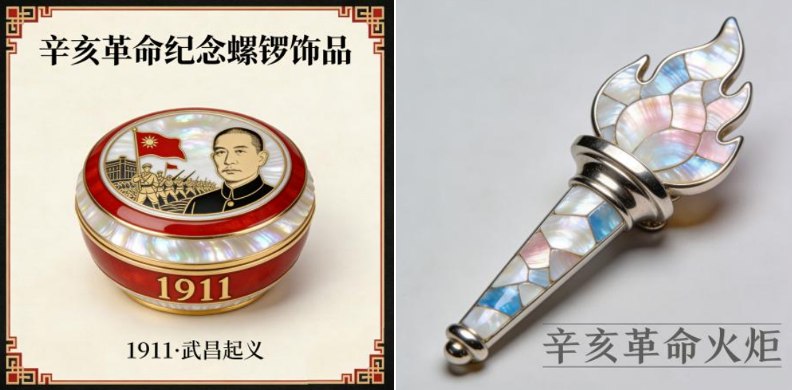 辛亥革命螺钿设计概念图3 、辛亥革命火炬螺钿设计概念图4