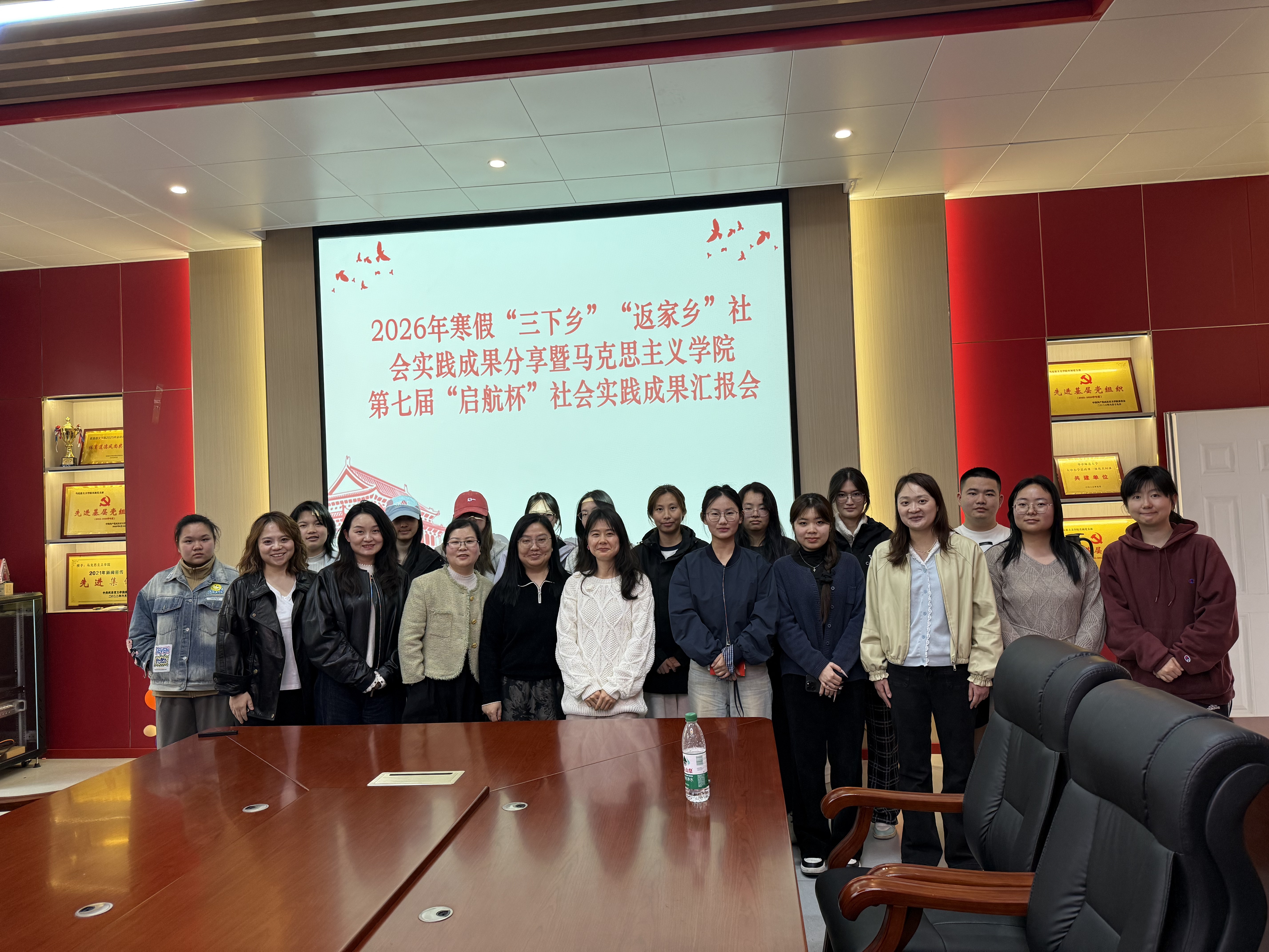为深入学习贯彻党的二十届四中全会精神,全面落实习近平总书记关于青年工作的重要思想和考察湖北重要讲话精神,进一步动员引领青年学生在投身基层建设、服务家乡发展中坚定信念、增长本领、作出贡献,引导青年学生上好“行走的思政课”和“一线的专业课”,4月2日,马克思主义学院第七届“启航杯”2026年寒期“三下乡”社会实践成果评选会在学院会议室圆满召开。马克思主义学院副院长张瑾、校团委袁娇老师及社会实践指导教师参会,会议由形势政策与社会实践教研室副主任黄珊珊主持。
